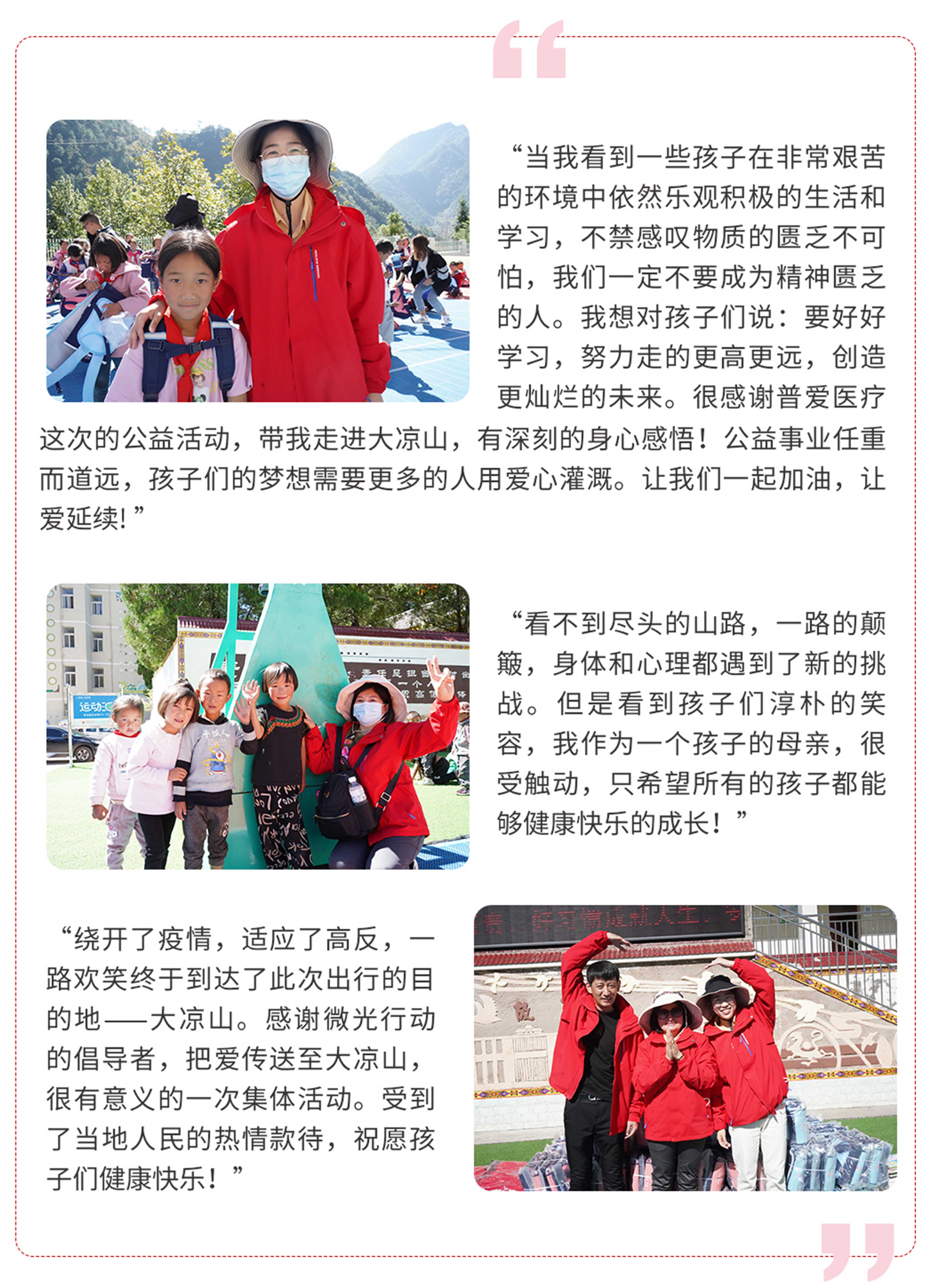 10月27至28日,普愛(ài)醫(yī)療攜手會(huì)員俱樂(lè)部成員,在四川涼山州鹽源縣開(kāi)展公益活動(dòng),為三所小學(xué)(涼山州鹽源縣梅子坪鎮(zhèn)中心小學(xué)、涼山州鹽源縣梅子坪鎮(zhèn)巴折教學(xué)點(diǎn)、涼山州鹽源縣甲米鎮(zhèn)小學(xué))修繕校舍、資助教學(xué)物資,為師生們送去保暖衣物,讓師生們?cè)谶@個(gè)冬天感受到一份特別的溫暖!