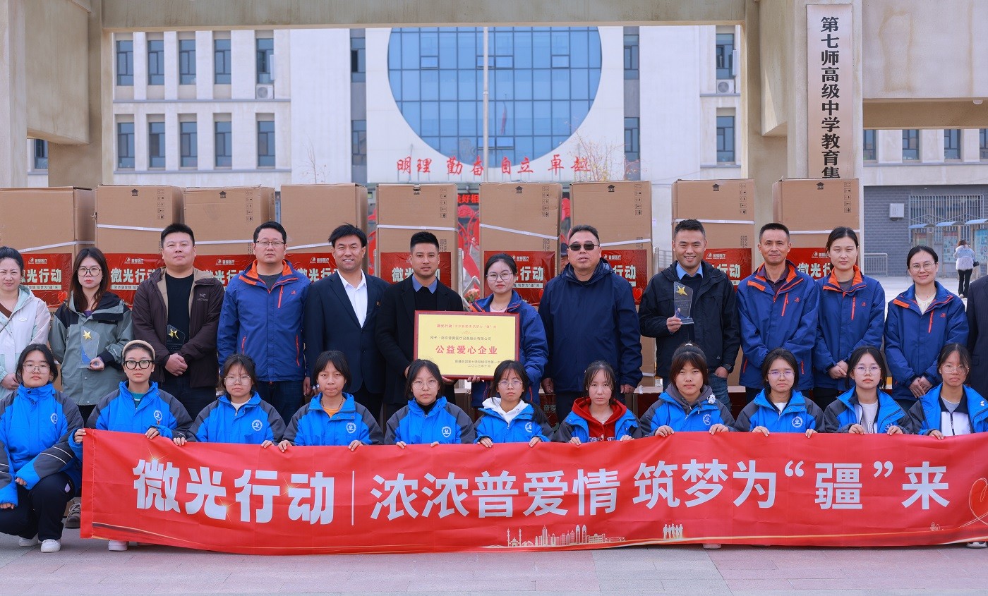 10月23日,由普愛醫(yī)療員工代表和會員俱樂部客戶代表組成的“微光行動”公益小組來到新疆胡楊河市第一中學開展助學捐贈活動。