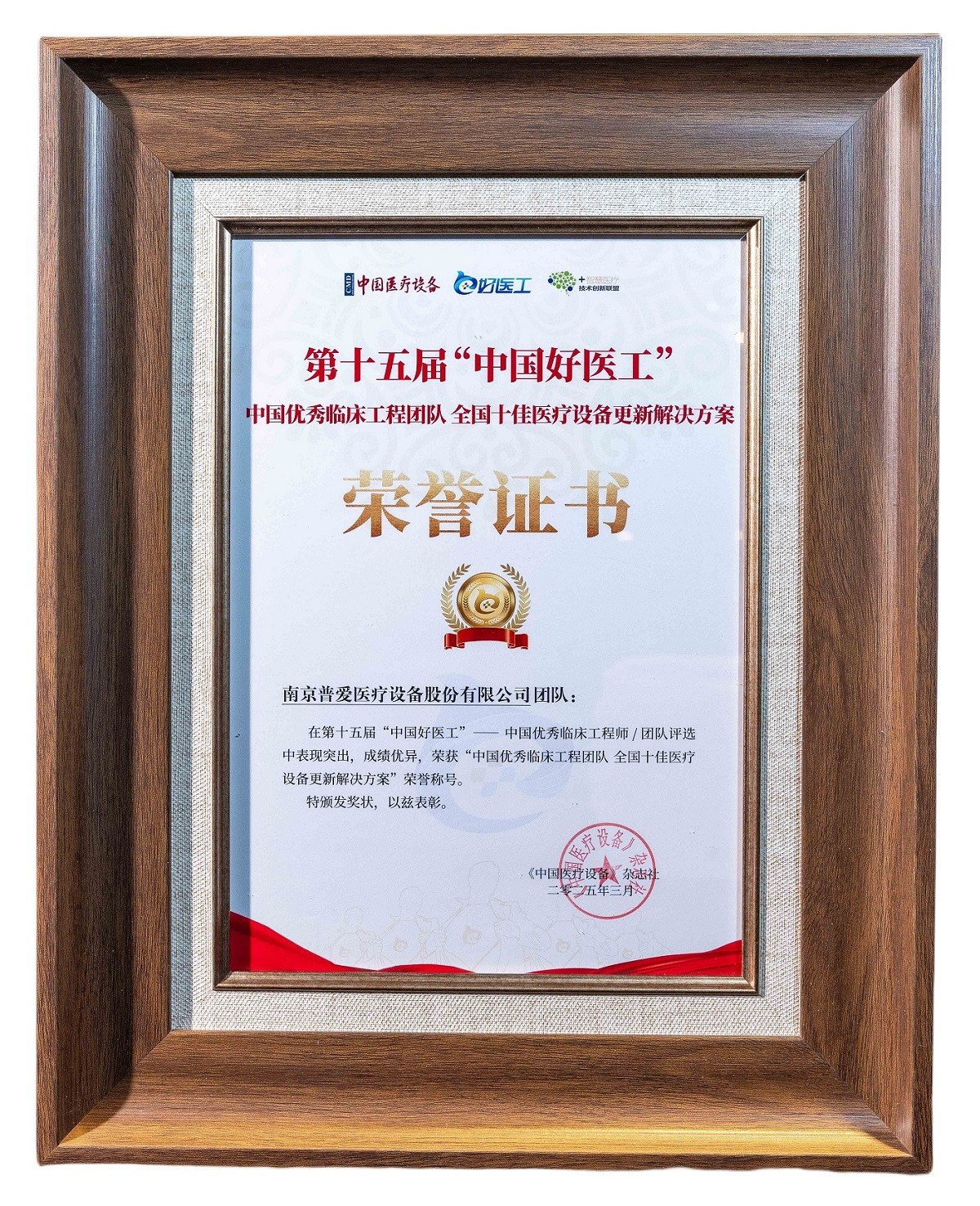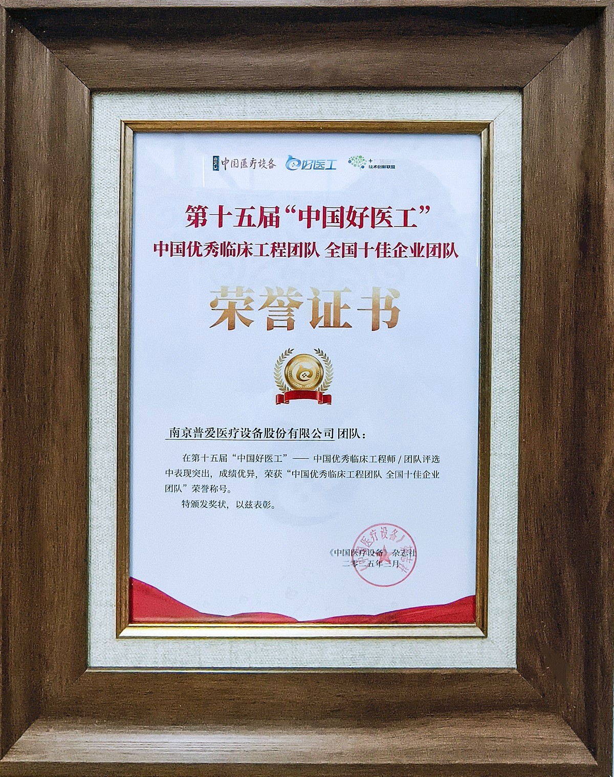 普愛醫(yī)療售后服務團隊憑借廣泛覆蓋的服務網(wǎng)絡、高效快捷的響應速度以及優(yōu)質(zhì)的服務,榮獲“中國優(yōu)秀臨床工程團隊”稱號。